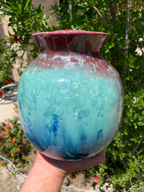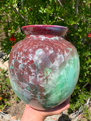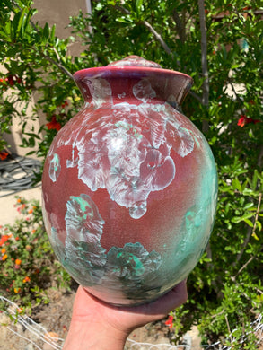 Crystalline Pottery Decorative Jar or Vase with Lid