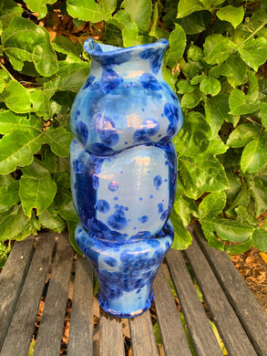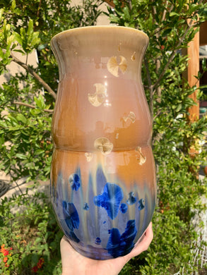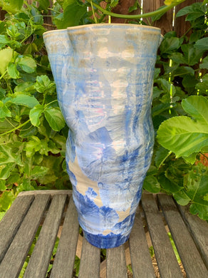 Crystalline Pottery Vase Handmade Blue and Gray Tornado Vase