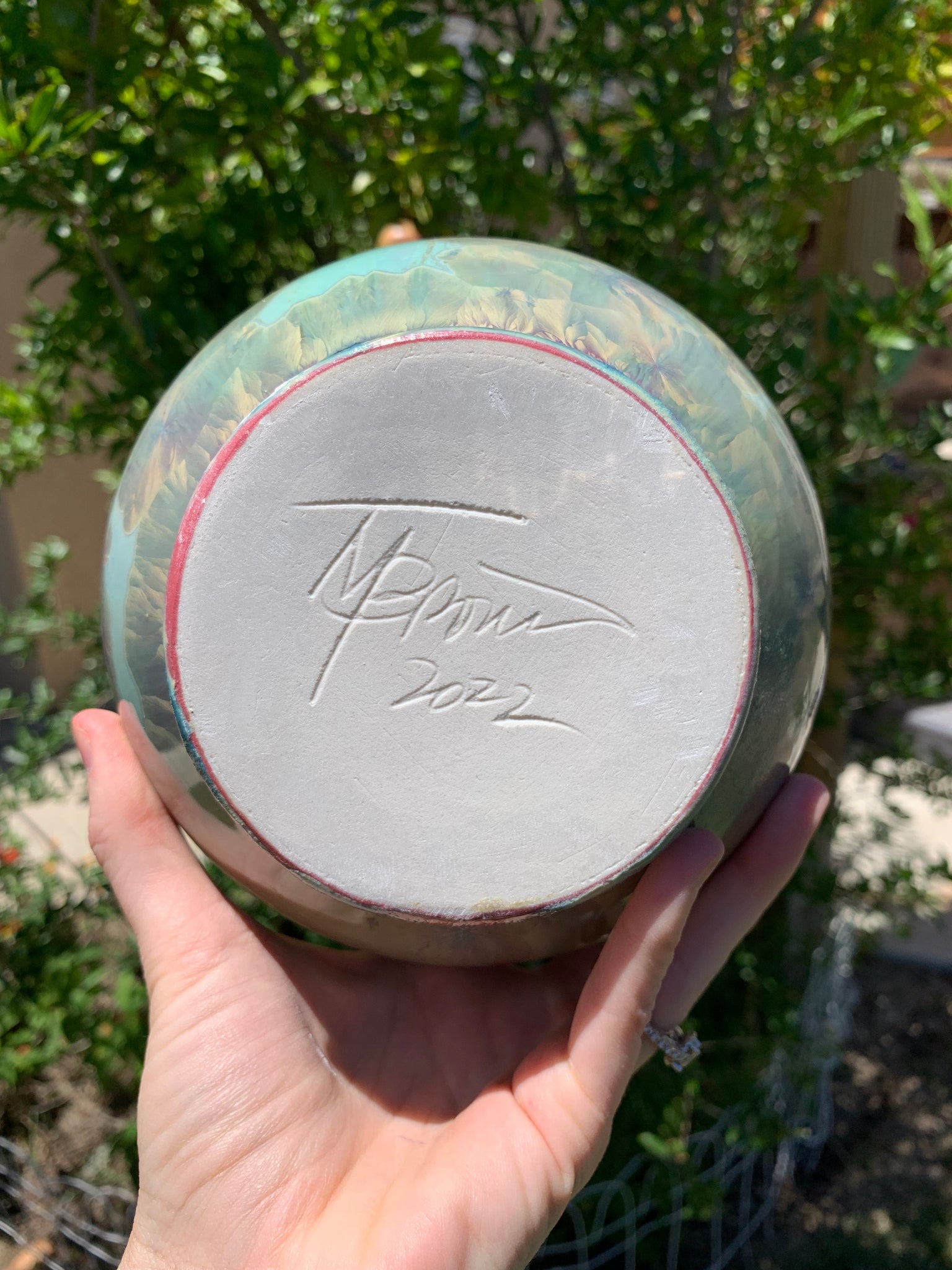 This vase would look great in a living room, dining room, kitchen, entryway, or even in an office space. This vase can be used for flowers or it can be decorative on its own to add vibrancy to any room!
